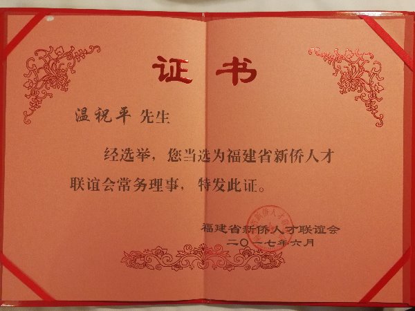 快普董事長溫祝平作為中國企業(yè)管理專家應邀出席會議,并當選為福建省新僑人才聯(lián)誼會常務理事。