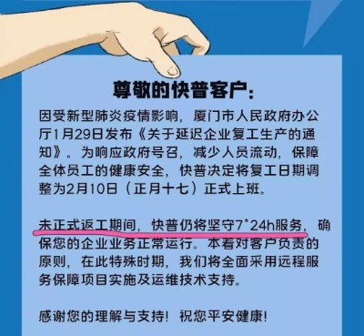 公司第一時間發(fā)布服務(wù)公告:未正式返工期間,快普將為客戶提供7*24h服務(wù),客戶可通過遠程方式獲取運維及項目實施等服務(wù)。
