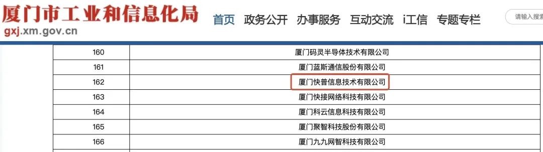 4月19日,廈門市工業(yè)和信息化局正式發(fā)布《2023年專精特新中小企業(yè)第一批認(rèn)定名單》,經(jīng)專家評(píng)審與綜合評(píng)估,快普成功獲得廈門市“專精特新”中小企業(yè)認(rèn)定。