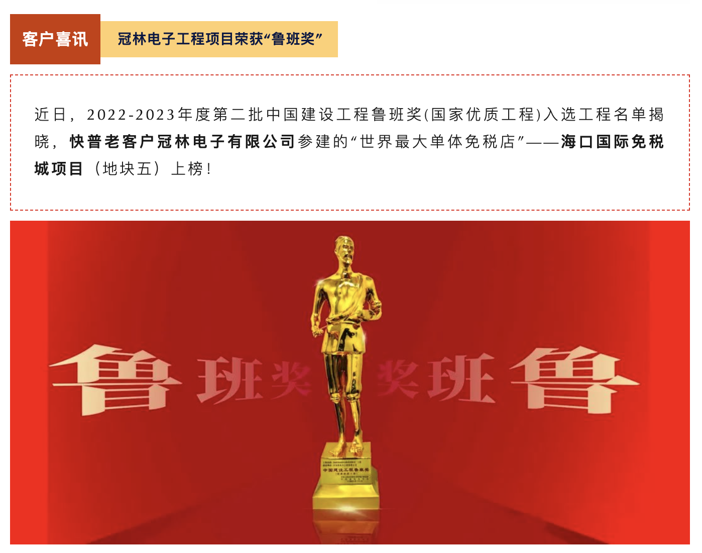 中國建設工程魯班獎(國家優(yōu)質工程)是由中華人民共和國住房和城鄉(xiāng)建設部指導、中國建筑業(yè)協(xié)會實施評選的獎項,是中國建筑行業(yè)工程質量最高榮譽獎,被譽為中國建筑業(yè)的“奧斯卡”,主要授予中國境內已經建成并投入使用的各類新(擴)建工程,且工程質量應達到國內領先水平。